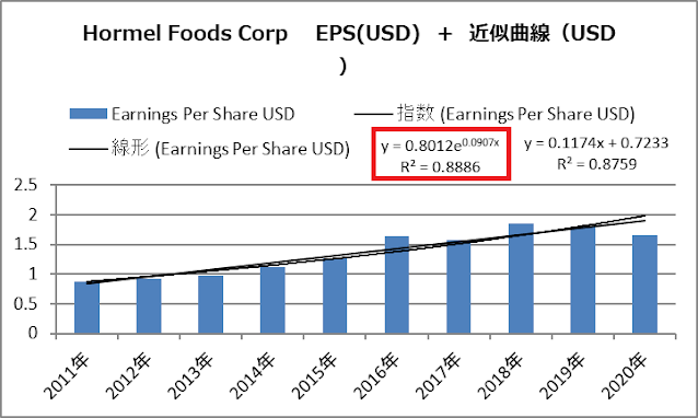 2011年から2020年のEPSを指数で近似したところ、EPS成長は7.44%となりました。
